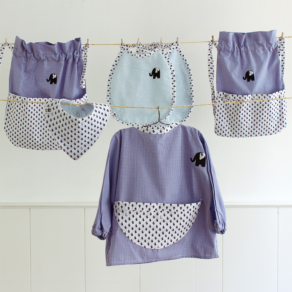 – Kit per llar d’infants Zó. Els conjunts inclouen bata, triangle babes, 2 pitets plastificats, bossa berenar i bossa robeta. A més, col·laboren amb una ONG per protegir els elefants a Tailandia (i és que Zó vol dir elefant en japonés). Tenim talla de 6m a 36m. Versió nen i nena. Fet tot aquí amb molt carinyo i uns acabats de qualitat. Amb roba de cotó 100%.